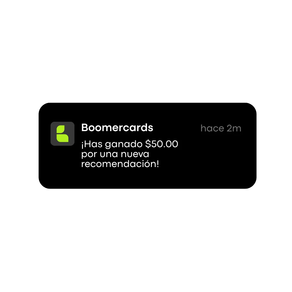 Es una forma de ganar dinero recomendando Boomercards a negocios locales. Por cada cliente que se registre y pague desde tu enlace, recibes una comisión directa.